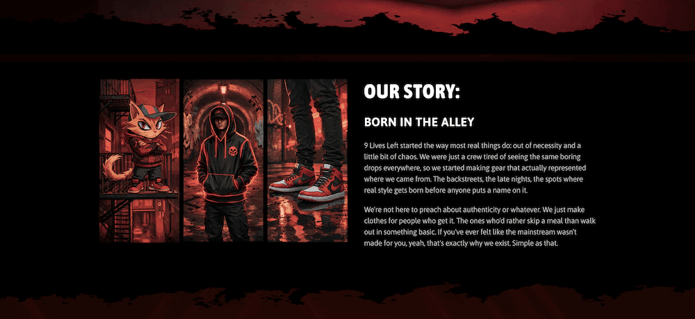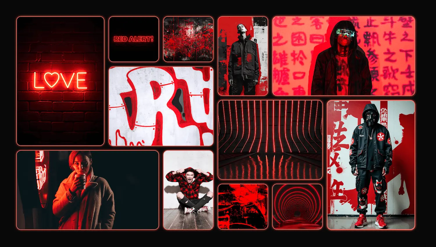 The mood board establishes a visual language of "Midnight Rebellion," rooted in the raw energy of the streets. We curated a palette dominated by a dark theme that evokes the feeling of navigating an alleyway at 2 AM. It is emphasized by aggressive red neon accents that demand attention. To capture the authentic texture of urban culture, we layered gritty elements like distressed brick and vibrant graffiti art, ensuring the digital space felt just as tactile as the physical world. This collision of cyberpunk aesthetics and underground streetwear culture creates a fearless backdrop, perfectly mirroring the brand’s "feisty" underdog spirit.