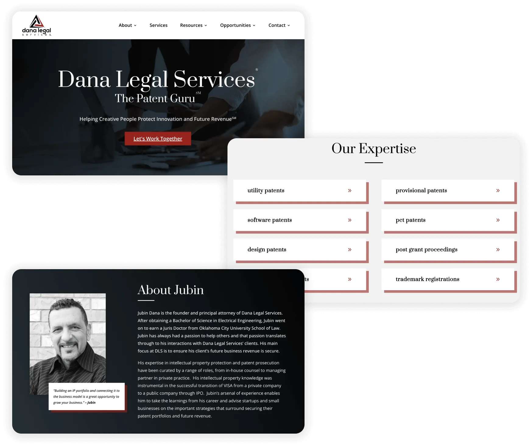 Dana Legal Services (“DLS“) is a US-based law firm that specializes in intellectual property law. We were contracted by the Head of Marketing to redesign DLS’s current website. Throughout this project, we used tools such as Google Drive for content management and WordPress as the web platform.