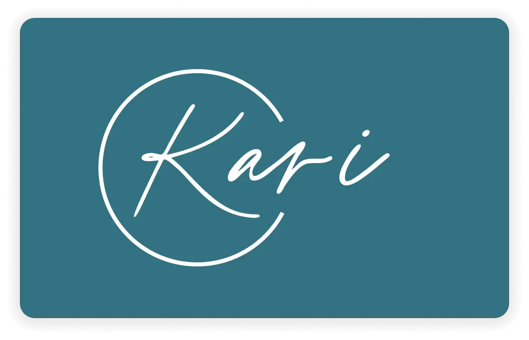 Kari’s logo was designed with simplicity and elegance in mind. Drawing inspiration from one of her personal tattoos, we incorporated a circular motif into the design. The circle not only symbolizes Kari’s love for water, aligning with her coaching philosophy of personal and organizational development. This thoughtful integration of personal meaning into the logo design helped create a strong, unique brand identity for Kari's business.